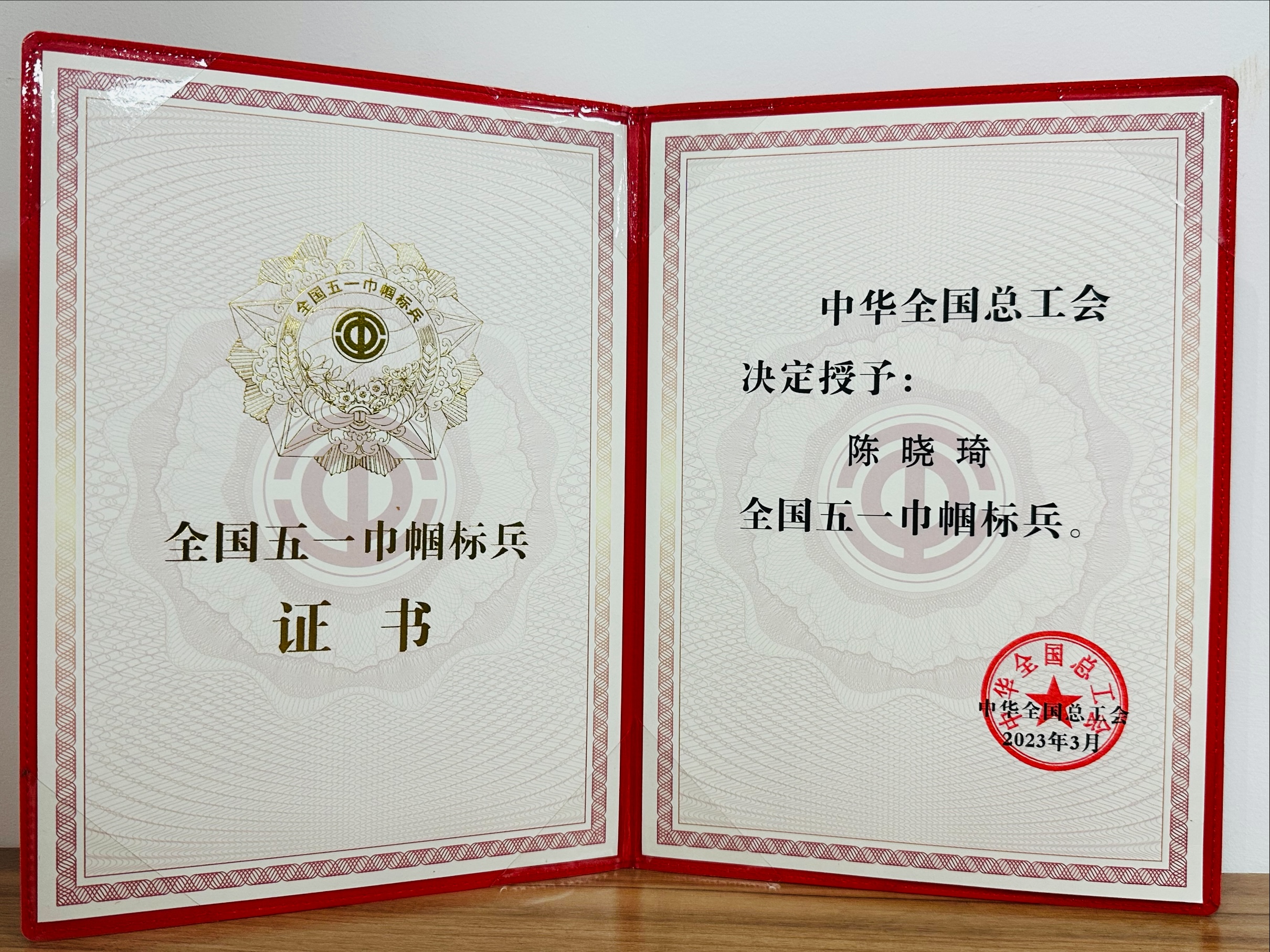 國家級:全國五一巾幗標(biāo)兵-陳曉琦