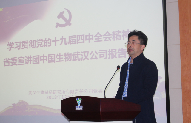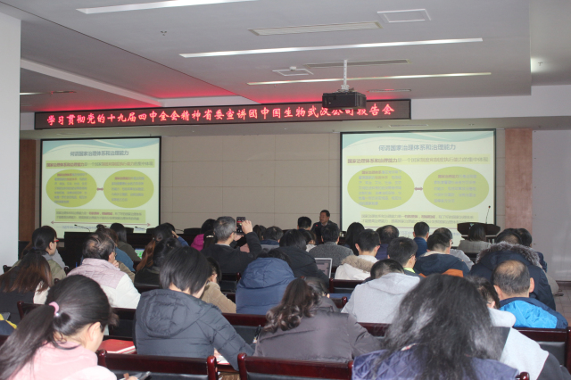 12月13日,中國生物武漢公司舉辦學(xué)習(xí)貫徹黨的十九屆四中全會精神湖北省委宣講團(tuán)報告會,湖北省委宣講團(tuán)成員、華中農(nóng)業(yè)大學(xué)馬克思主義學(xué)院院長梁偉軍同志作宣講報告,武漢公司領(lǐng)導(dǎo)班子成員、黨委委員、中層管理人員、黨支部書記及黨員代表共160余人參加宣講報告會。
