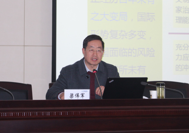 報告會上,梁偉軍同志以《筑牢制度根基 實現(xiàn)偉大夢想》為題,對黨的十九屆四中全會的時代背景、重要意義進(jìn)行了解析,系統(tǒng)闡述了堅持和完善中國特色社會主義制度、推進(jìn)國家治理體系和治理能力現(xiàn)代化的重大意義、總體要求、總體目標(biāo)和重點任務(wù)等內(nèi)容,從歷史和實踐的維度,用具體的數(shù)據(jù)和案例為與會人員帶來了一場生動、全面、精彩的報告。