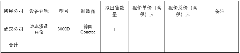 本項目標的物為武漢生物制品研究所有限責任公司擁有的閑置設備,共1臺冰點滲透壓儀,詳見附件。